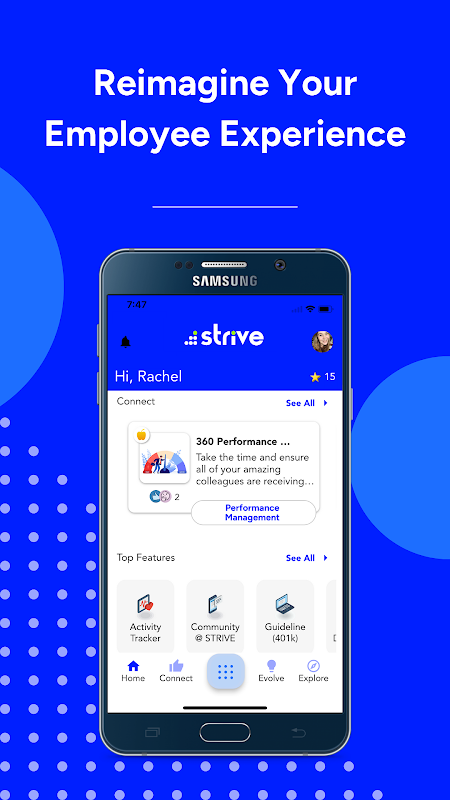 ¡Reimagina la experiencia de tus empleados con Strive! A través de una solución personalizada, adaptada a ti y a tus necesidades, te ofrecemos la experiencia única que te permite conectar, evolucionar y explorar. Desde recompensas y reconocimiento hasta el acceso centralizado a los programas y beneficios de tu empresa, nuestra solución impulsa la unidad, el crecimiento y el bienestar individual.