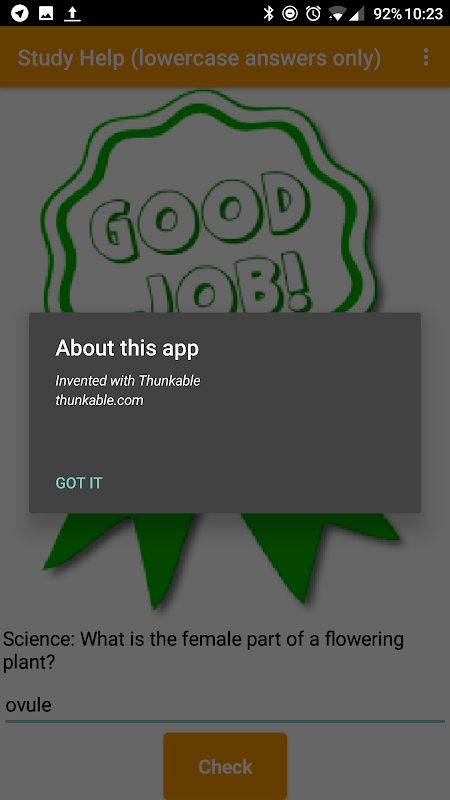The app was developed using Thunkable.