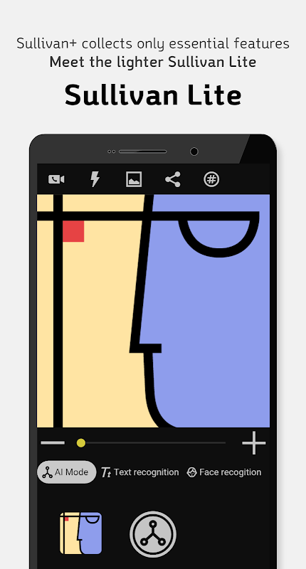 Sullivan Lite proporciona un uso más ligero y conveniente al recopilar las funciones más utilizadas entre las diversas funciones proporcionadas en la aplicación Sullivan Plus existente. Se implementa con la UI/UX básica de la cámara, familiar para los usuarios de Android, por lo que se puede usar fácilmente y, como es liviana, se puede usar rápidamente y sin demora, incluso en dispositivos de baja especificación. Además, Sullivan Lite ha sido compatible con aquellos que han querido utilizar Sullivan Plus en una pantalla grande, como una tableta, para que puedan disfrutar de una vida cómoda con Sullivan Lite en una variedad más amplia de dispositivos.