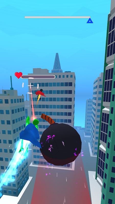 Persigue al supervillano volando por la metrópolis. Dispárale con el láser de tus ojos.