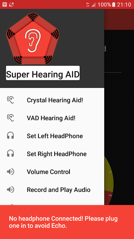 solicitud de ayuda de Super Audiencia sobre la base de su teléfono móvil, se amplifica el sonido del micrófono directamente a los auriculares para dar audiencia mejorada y que está diseñado para ayudar a las personas con discapacidad auditiva. Como una herramienta de mejora para los sordos, que será útil en la comunicación, la educación y el entretenimiento. se ejecuta mismos principios que el audífono portátil convencional. Ahora Obtener voz cristalina con una ayuda de tu teléfono móvil!