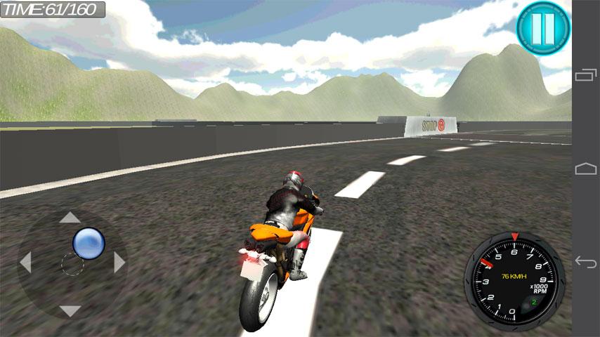 2 A button that Left of the screen (there are four arrow icon) to control the direction of the motorcycle, the top right of the screen there is a pause button.