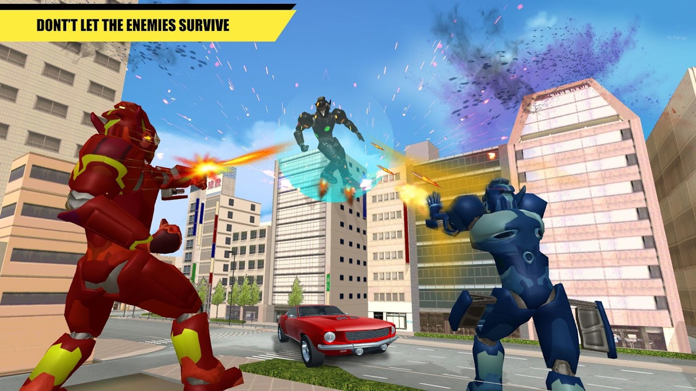 Knock down the rising power by your super action game rage and fire down the camps of your enemy in city environment with full action and super war face. It is setting trends in 2017 games to bring in the capacity of firing, chasing and Robot fighting with an ultimate quality Car and Robot game mode.
