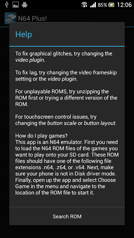 - Supports N64 game file (.n64, z64, v64, .zip, .rar)