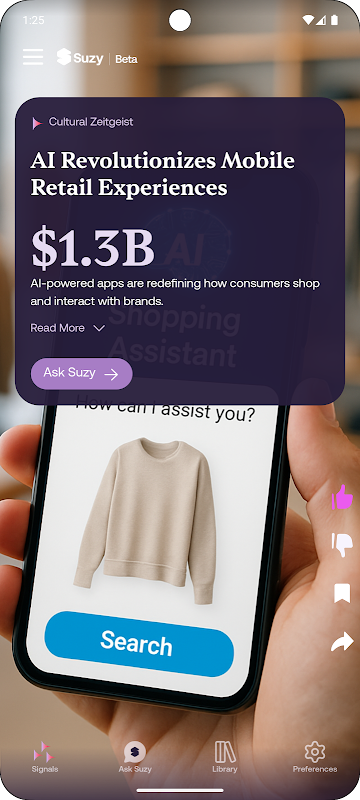 Signals es tu fuente constante de tendencias emergentes, cambios culturales e información competitiva, todo adaptado a tu puesto, empresa, categoría e intereses. Signals permite a las marcas:
