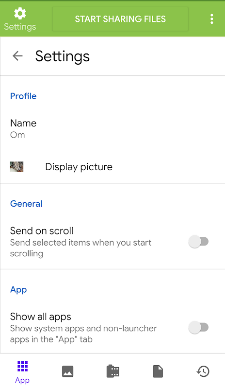 2. Abra Swift Transfer y haga clic en "INICIAR COMPARTIR ARCHIVOS"