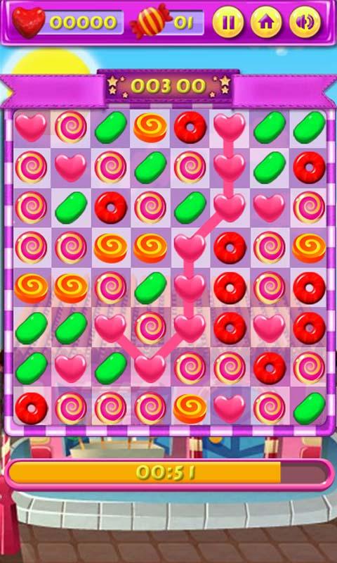 Swipe dulces tanto como sea posible para eliminar piezas de dulces para los puntos! y presentamos la puntuación más alta a la tabla de clasificación.