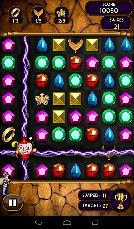 - Toca y desliza sobre gemas similares para eliminarlas.