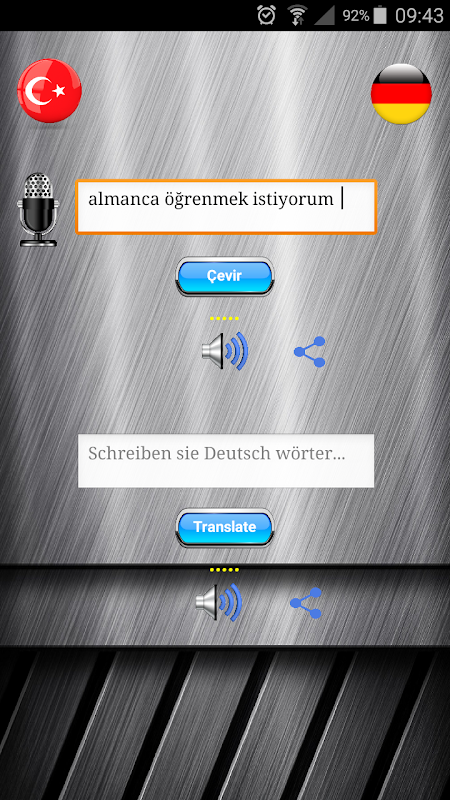 Almanca çevirilerin telafuzunu dinleme seçeneği.