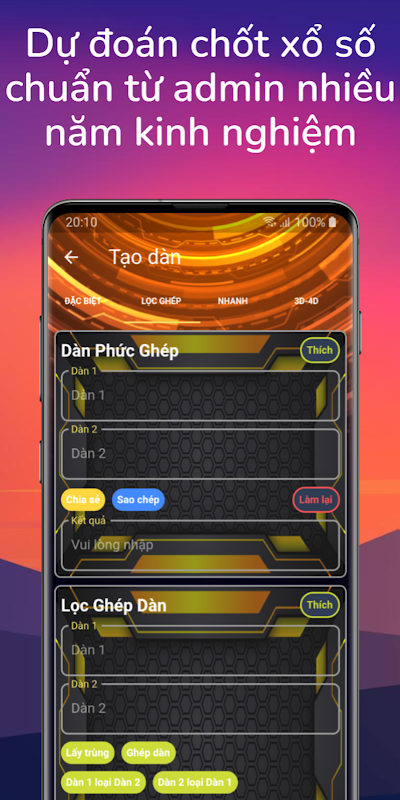 - Interfaz amigable: con una interfaz de usuario simple y fácil de usar, la aplicación lo ayuda a crear y administrar números de predicción fácilmente y sin dificultad. Ya sea que sea nuevo o tenga experiencia, se acostumbrará rápidamente a las funciones de la aplicación.