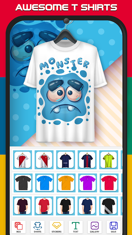 La aplicación de diseño de camisetas tiene toneladas de artes, colores, camisetas y texturas.