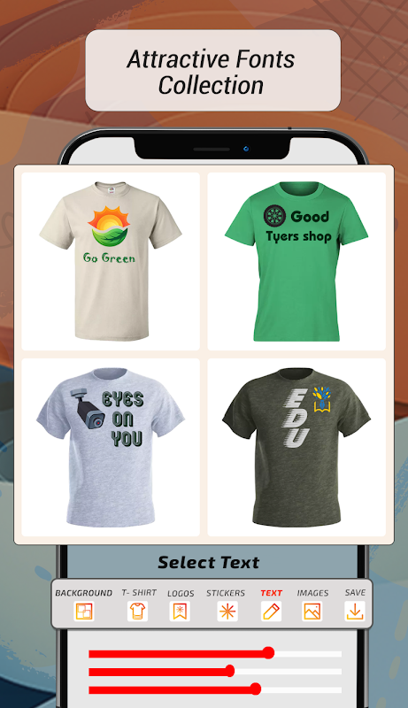 Con la aplicación de diseño de camisetas, puede completar fácilmente sus diseños únicos de camisetas con nuestras herramientas divertidas y fáciles de usar.