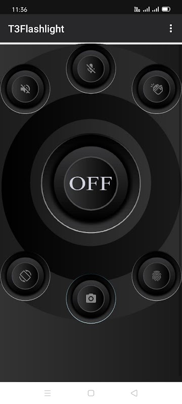 Aplicación T3 Flashlight con interfaz de usuario simple y múltiples formas de abrir la linterna