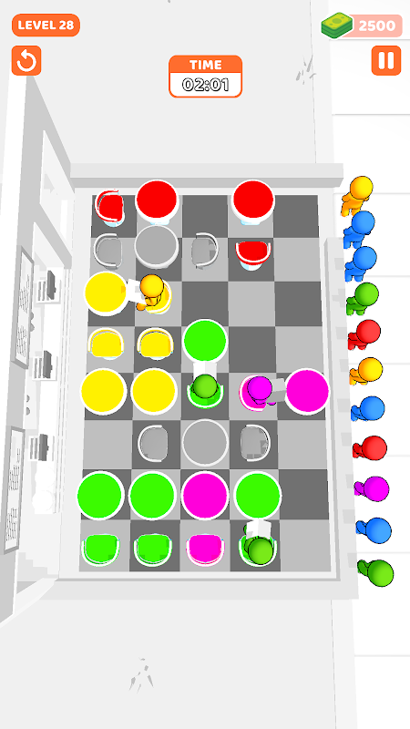 ¡Bienvenido a Table Shuffle! Pon a prueba tus habilidades para resolver puzles mientras gestionas un restaurante concurrido y acomodas a los clientes en sus mesas. En este atractivo juego para móviles, tu tarea es mover las mesas estratégicamente para despejar el camino a los clientes, que esperan ansiosos sentarse. Resuelve puzles moviendo sillas y llenando las mesas con comensales satisfechos. Con diferentes niveles ambientados en diversos restaurantes, como hamburgueserías y bares de sushi, cada uno con desafíos únicos, tu objetivo es superar los obstáculos y completar cada puzle.