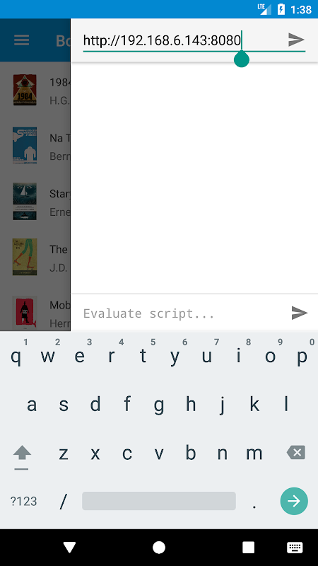 Deslizar el dedo desde la derecha para abrir la consola de desarrollo. Permite a los usuarios ver salida de la consola y cambiar entre el punto de vista de la escritura y de la página de la información Tabris.js.