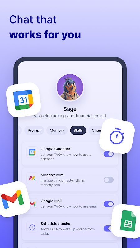 Taka te ayuda a escalar tu productividad con agentes de IA personalizados que colaboran, automatizan y toman acción. Ya sea que gestiones tareas, te coordines con un equipo o te encargues de varios proyectos, ahora tienes compañeros de IA siempre listos para ayudarte.