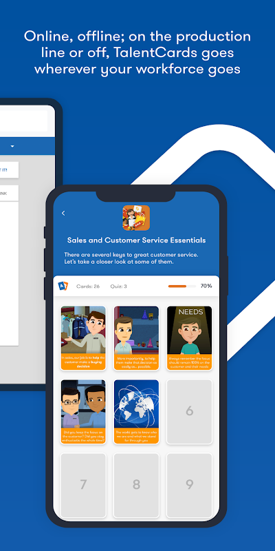 tarjetas de aprendizaje se construyen en la web y se entregan a través de la aplicación para formar a las personas en cualquier escenario de tema y la formación.