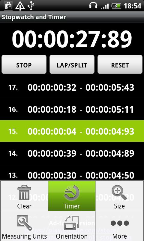 ★Mejora la vida de la bateria. (Si sales de la aplicación sin parar la operación de medición, la aplicación seguirá midiendo tiempo la próxima vez que la vuelvas a iniciar. No necesitas ejecutarla en segundo plano.)