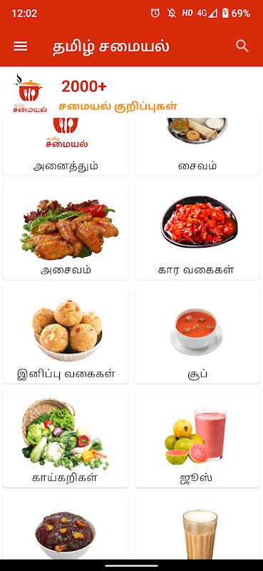 Tamil Samayal kurippukal, Recetas vegetarianas, Recetas no vegetarianas, Más de 2000 Recetas en tamil