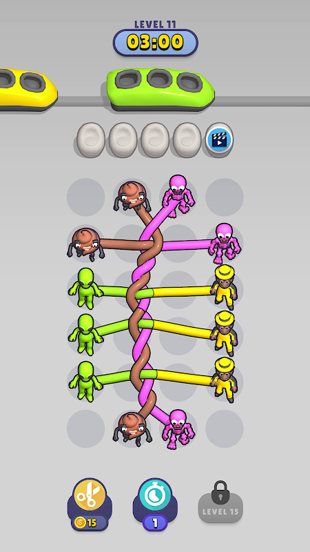 - Desenreda las cuerdas para liberar a los personajes.