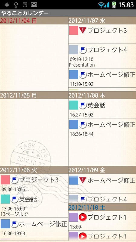Guarde las tareas antes de que usted se olvida y ellos (el color de cada tarea) se pega en las fechas!