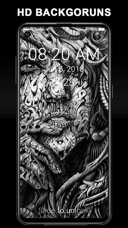 Tattoo HD Slide Unlock Screen will help you to lock your screen by passcode lock and make your screen looks like phone lock screen lock screen . Cool wallpapers and in the same time you save your privacy with this lock screen app, lock screen allow you to set a passcode to protect your privacy , or you can just using slide to unlock without pin code.