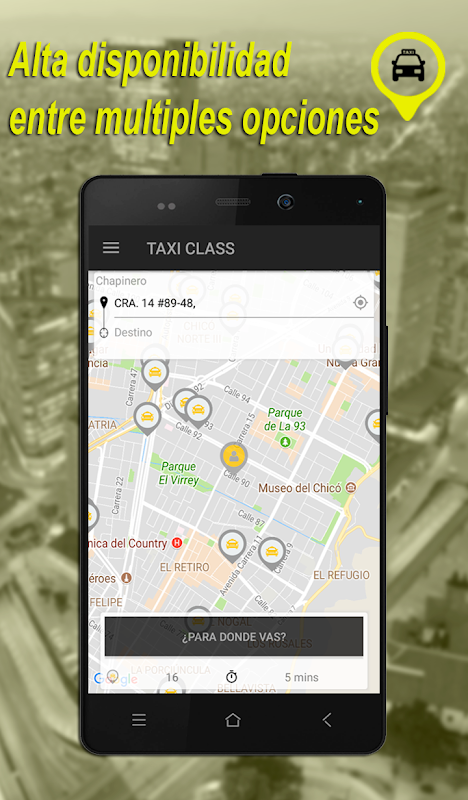 • Este completamente informado del status de su taxi vía el mapa en tiempo real