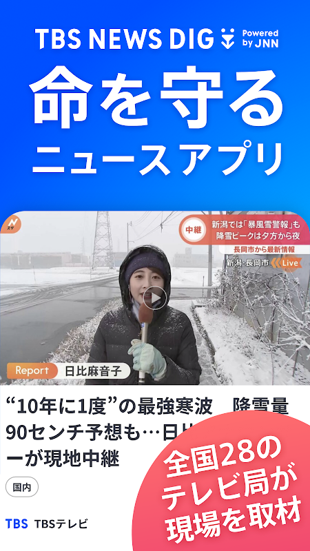 Es una aplicación de noticias gratuita que profundiza en la verdad de las noticias que no se pueden transmitir por televisión, con la propia red de cobertura de la estación JNN28, afiliada a TBS. Entregamos contenido único como una variedad de noticias y transmisiones en vivo de festivales en varios lugares. Trabajaremos para que sea más fácil de entender y transmitir más profundamente.
