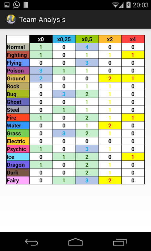 This tool helps you to create a team checking all your Pokemon weaknesses. You only have to choose the Pokemon of your team and this app will show you how much weaknesses and resistances to every type your team have.