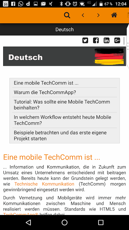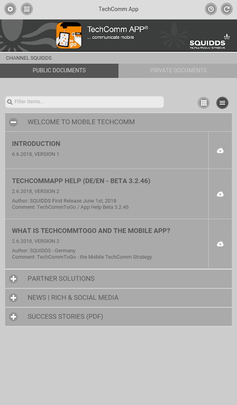 Die Mobile TechComm App bietet zahlreiche, nützliche Eigenschaften und Funktionen, die das Verteilen mobiler Dokumentation an die Mitarbeiter und Kunden leicht und übersichtlich macht.