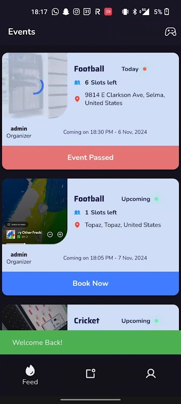 Organice eventos: cree y administre sus propios juegos configurando la hora, la ubicación y los detalles.