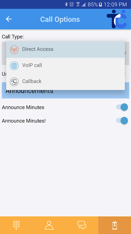 Fácil de usar: Eres dueño de número de celular es su cuenta con Teleclaro; se obtiene un código de acceso en el mensaje SMS o una llamada de teléfono para autenticar su número. Una vez autenticado, utilice teclado de marcación para marcar cualquier número en el mundo o seleccionar un número de teléfono de sus contactos guardados en el teléfono. Teleclaro aplicación hará el resto para usted llamando automáticamente ese número utilizando el método seleccionado llamando (por defecto: Acceso Directo / Local). No hay necesidad de recordar un alfiler o marcar un número de acceso en primer lugar.