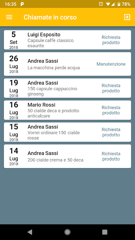 invio richiesta ordine prodotti, guasti macchina e richieste commerciali, tramite una semplice funzionalità dell’App