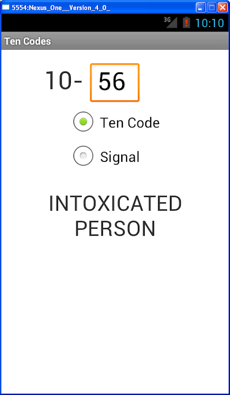 The Ten Codes application is an extremely simple tool. The intended users are the EMS community. It is primarily to enable First Responders to interpret radio communications quickly and easily. It interprets ten codes i.e. 10-4 (ACKNOWLEDGEMENT), 10-20 (LOCATION), as well as signal codes used by law enforcement into common language.