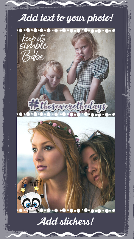 👍 Usa pegatinas divertidas y efectos de cámara y aplica algunos de los filtros más populares. Este editor de collage de fotos Ten Years Challenge Insta Editor de Fotos es una aplicación perfecta para combinar fotos de 2009 y 2019 y publicarlas como una sola foto. Este creador de collage será útil cuando quieras compartir viejos recuerdos con amigos y seguidores en las redes sociales. ¡Puedes hacerte popular con solo una foto, así que hazla perfecta! Luego puedes publicar tu imagen como historia de Instagram, establecerla como imagen de perfil, compartirla o enviarla en un mensaje privado. Puedes hacer todo tipo de comparaciones, por ejemplo, tu primera imagen de perfil junto a la actual. ¡Este moderno desafío de edición de fotos te permite comparar los cambios de la edad de antes y después y te recordará los momentos más divertidos del pasado! ¡Sigue los pasos de las celebridades y conquista todas las redes sociales!