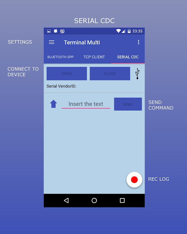Esta aplicación es una aplicación de terminal, los datos se envían a través de Bluetooth, TCP, de serie. Rec registro.