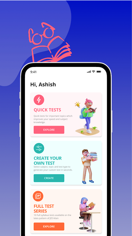 Aplicación JEE MAIN para mejorar la puntuación del examen con módulos de prueba personalizados.