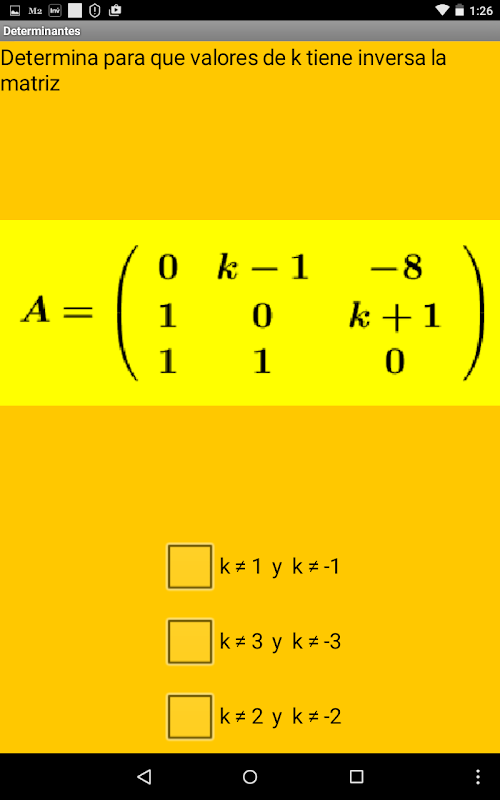 Aplicación tipo test de 20 preguntas sobre determinantes