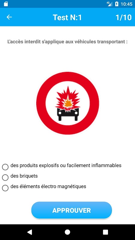 Cette application vous propose 12 séries de 10 questions conformes au nouvel examen théorique du code de la route. Il place le lecteur dans les conditions réelles de l'examen : les questions sont réparties selon les différentes catégories de panneau de signalisation Chaque question fait l'objet d'une correction détaillée, ce qui permet au candidat de progresser rapidement et de réussir le jour de l'examen