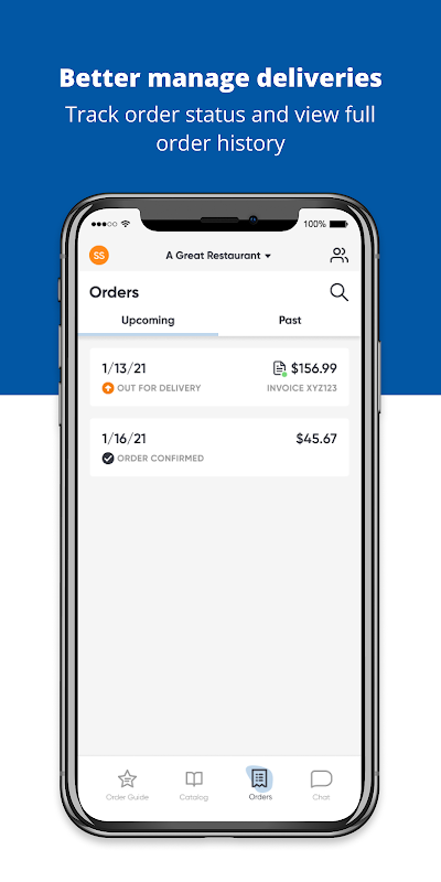 Nuestra aplicación móvil le permite buscar en nuestro catálogo completo de productos, administrar y actualizar su guía de pedidos y comprar lo que necesita en el momento que lo necesita. Es parte de nuestro compromiso de brindarle una experiencia de pedido que le encantará.