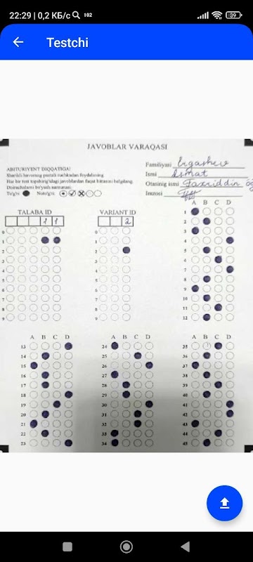 Камерангиз билан жавоблар варақасини баҳоланг.