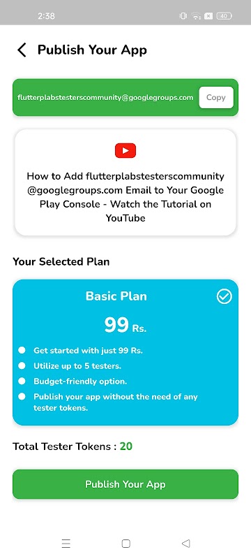Encontrar evaluadores puede resultar complicado y llevar mucho tiempo. Con Testers 20, puedes conseguir fácilmente 20 testers para tu aplicación. Nuestra plataforma está diseñada para brindarle un grupo de evaluadores que están listos para ayudarlo a ajustar su aplicación y garantizar que esté lista para Play Store.