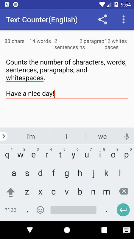 "Text Counter" is an app that counts the number of characters, words, sentences, paragraphs, and whitespaces.