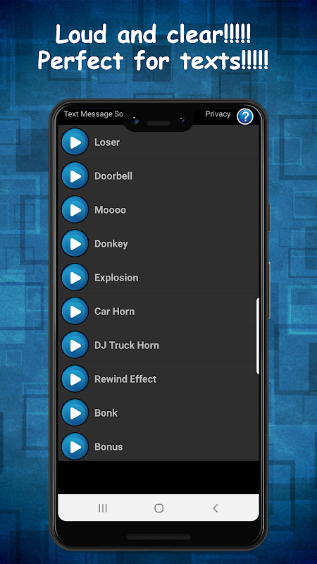 simplemente seleccione sus sonidos de mensajes de texto gratuitos favoritos para escucharlos y guárdelos tocando la marca de verificación verde.