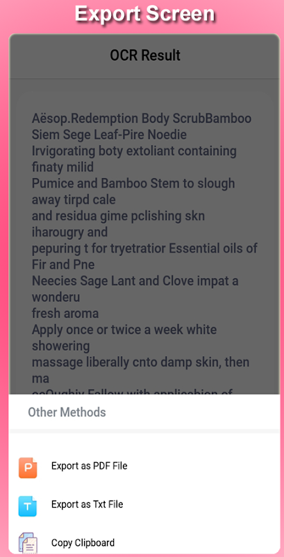 This is a FREE text scanner & converter application that scan your text that can later can be send via email or share on social media or you can copy that text in clipboard and later can be used in any other app.