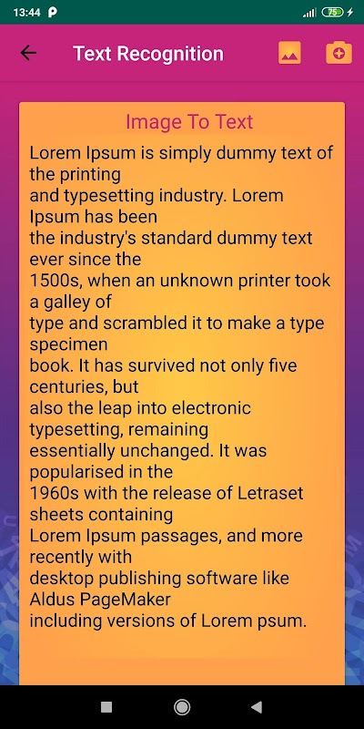 Puede elegir una imagen de su galería o tomar una foto en tiempo real y transformarla en texto de una manera fácil.