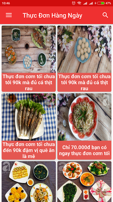 "Chỉ 70.000đ bạn có ngay thực đơn cơm tối"