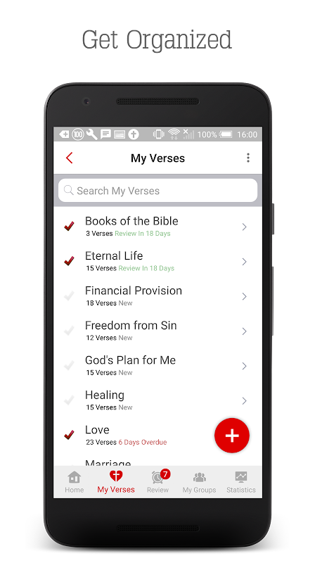 • Ingrese sus versículos para memorizar manualmente O importándolos desde Internet.