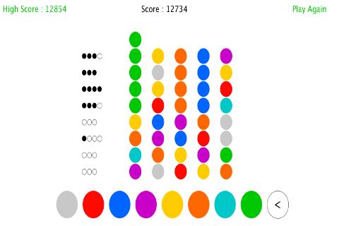After each guess you make (one guess consists of you choosing 5 out of the 8 colours on the bottom of the screen and putting them in an order of your choice), the computer will give you a feedback: