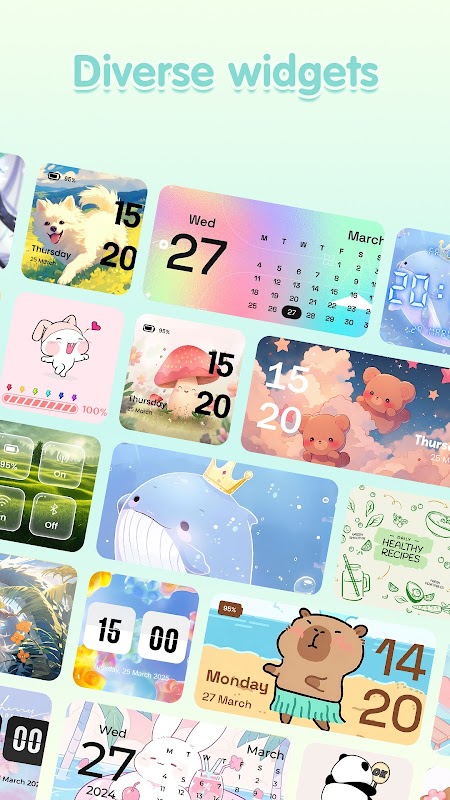 Desde la ternura de los capibaras 🦫, el vibrante mundo del anime 🌸, la tranquilidad de la naturaleza 🌿 y los paisajes ⛰️, hasta adorables animales 🐾, flores florecientes 🌺, adorables chibis 💕, coches potentes 🚗 y dinámicos deportes ⚽: Temas lo tiene todo. ¡Con solo unos toques, tu pantalla de inicio se renueva por completo!
